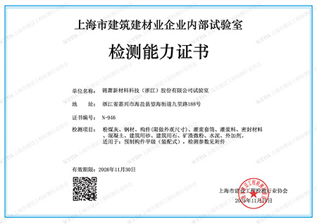 上海市建筑建材業(yè)企業(yè)內(nèi)部試驗室檢測能力證書